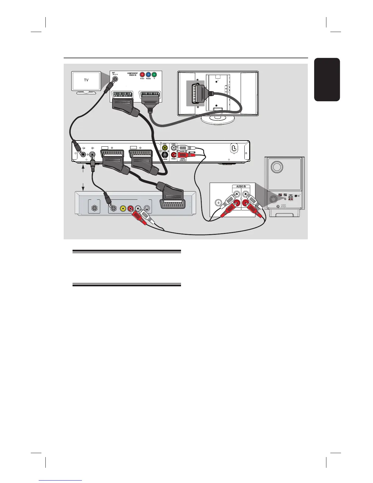 B Use the scart cable to connect this unit