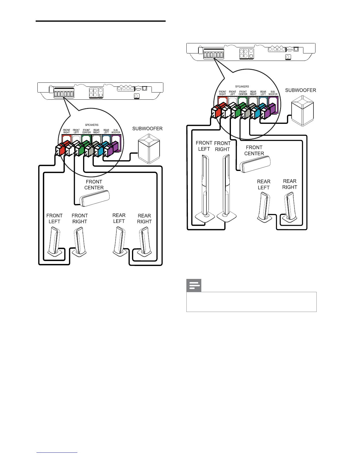 1 Connect the speakers and subwoofer to