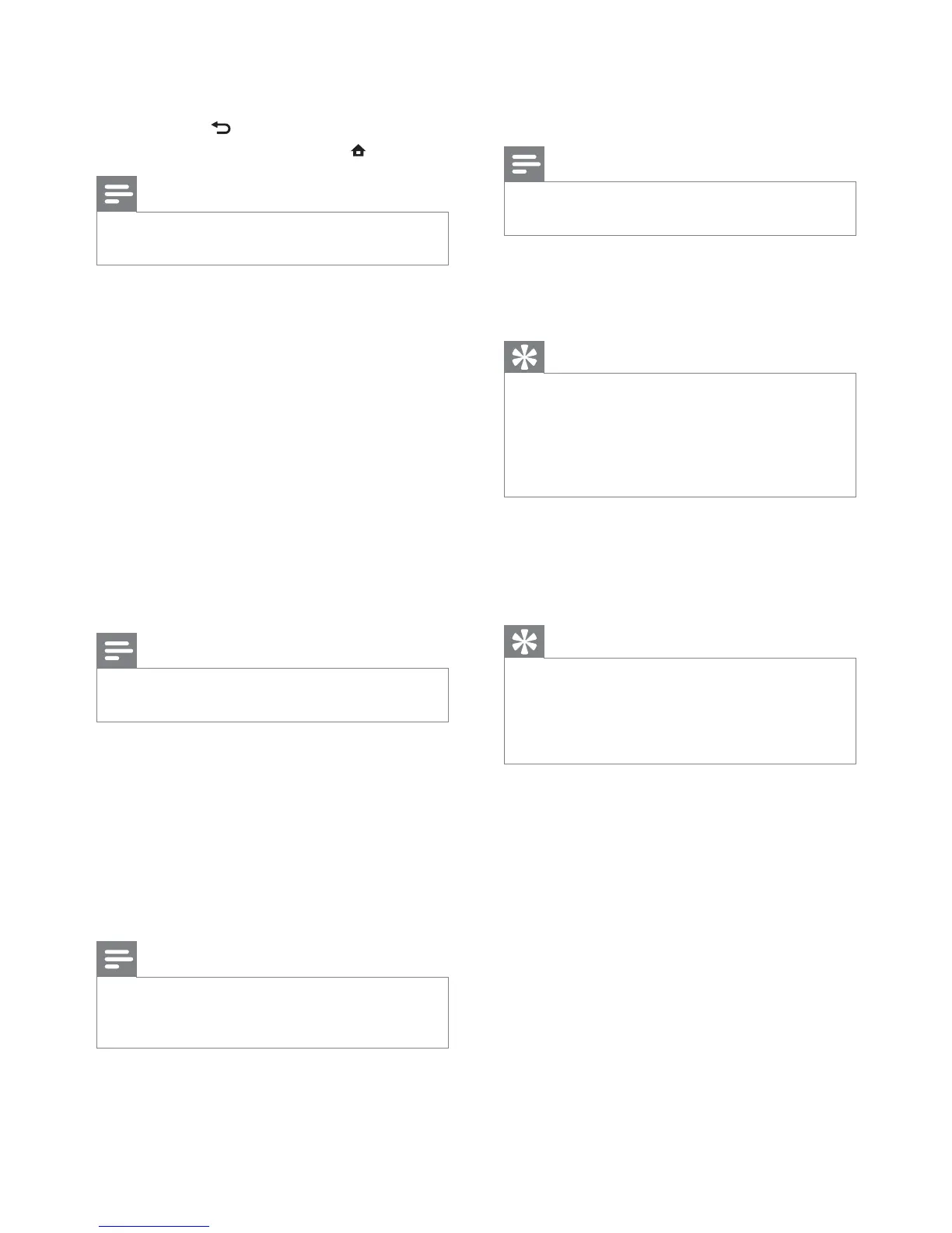 To return to the previous menu, •