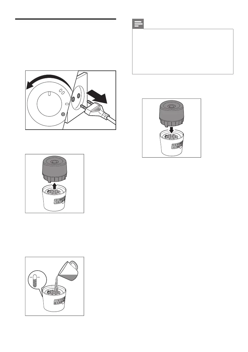 • Schud het waterreservoir niet wanneer u het verplaatst.