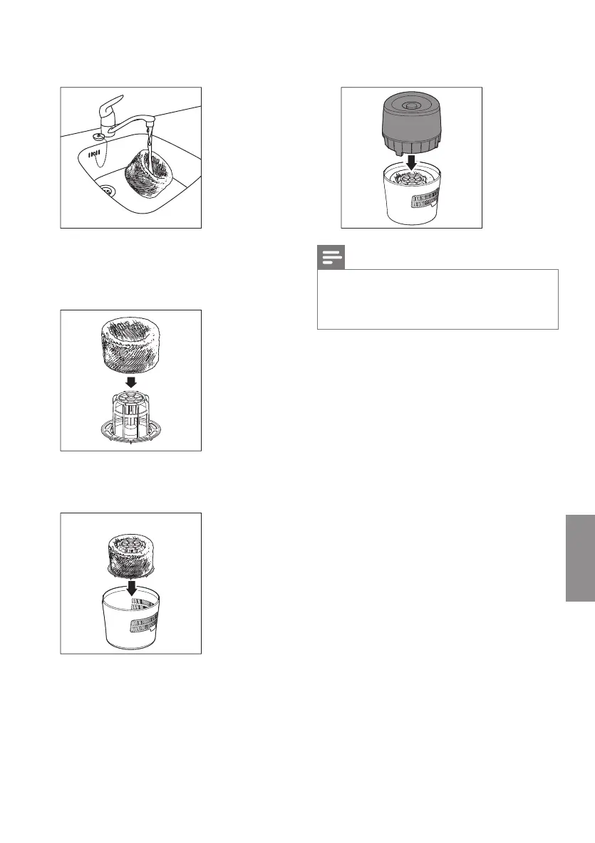 7 Laat het bevochtigingslter uitlekken.