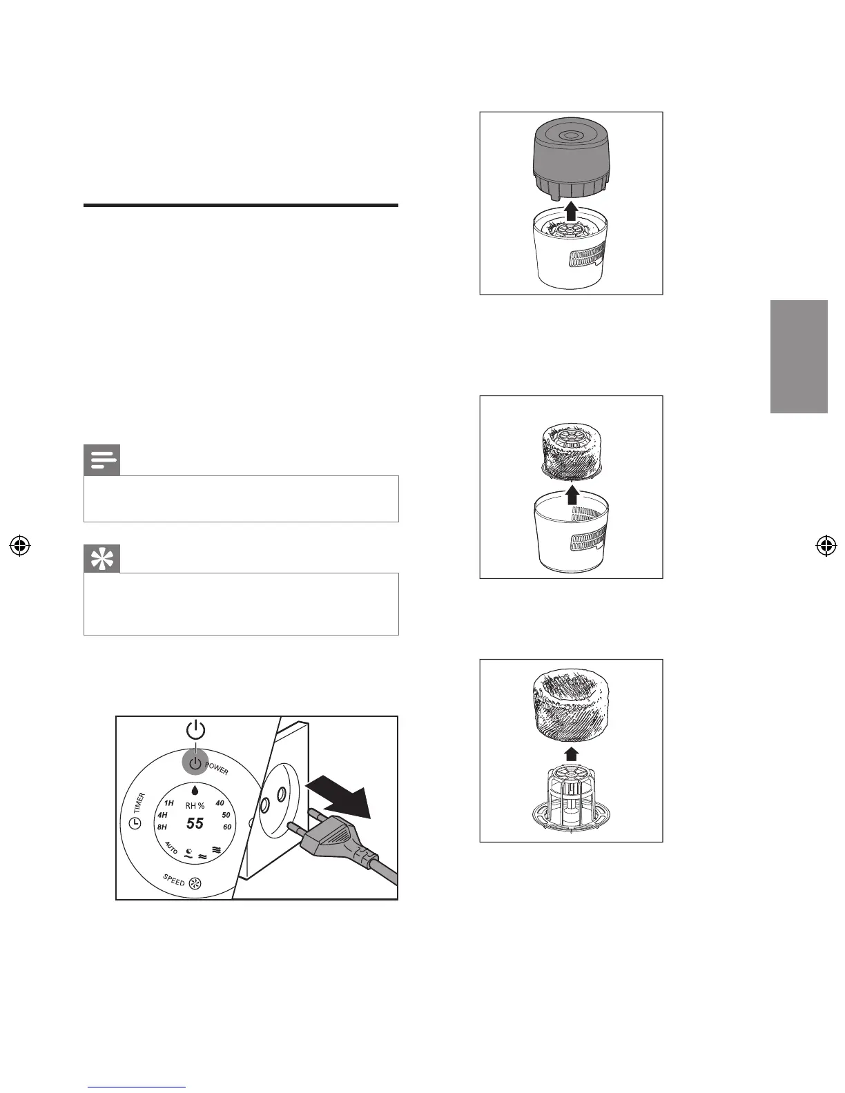 1 Выключите увлажнитель воздуха и