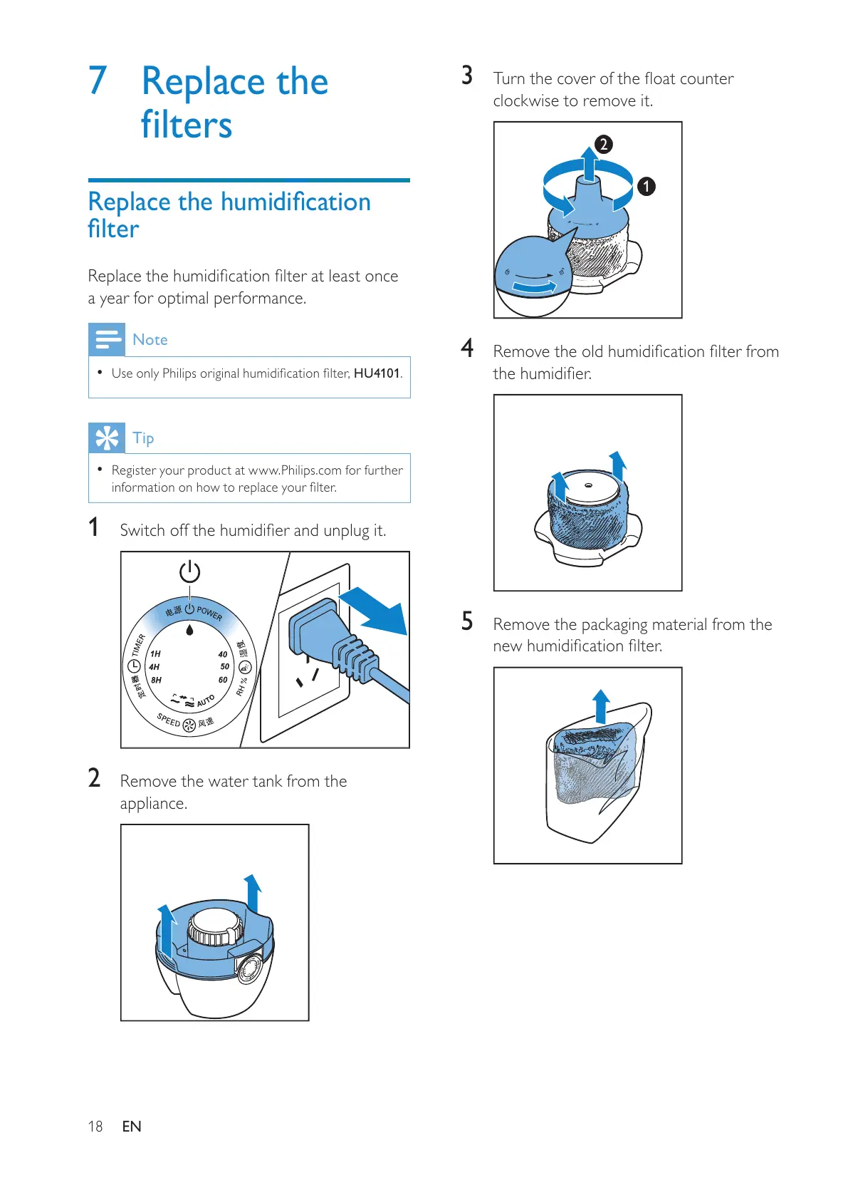 Philips HU4902 - Filter Replacement; Replacing the Humidification Filter