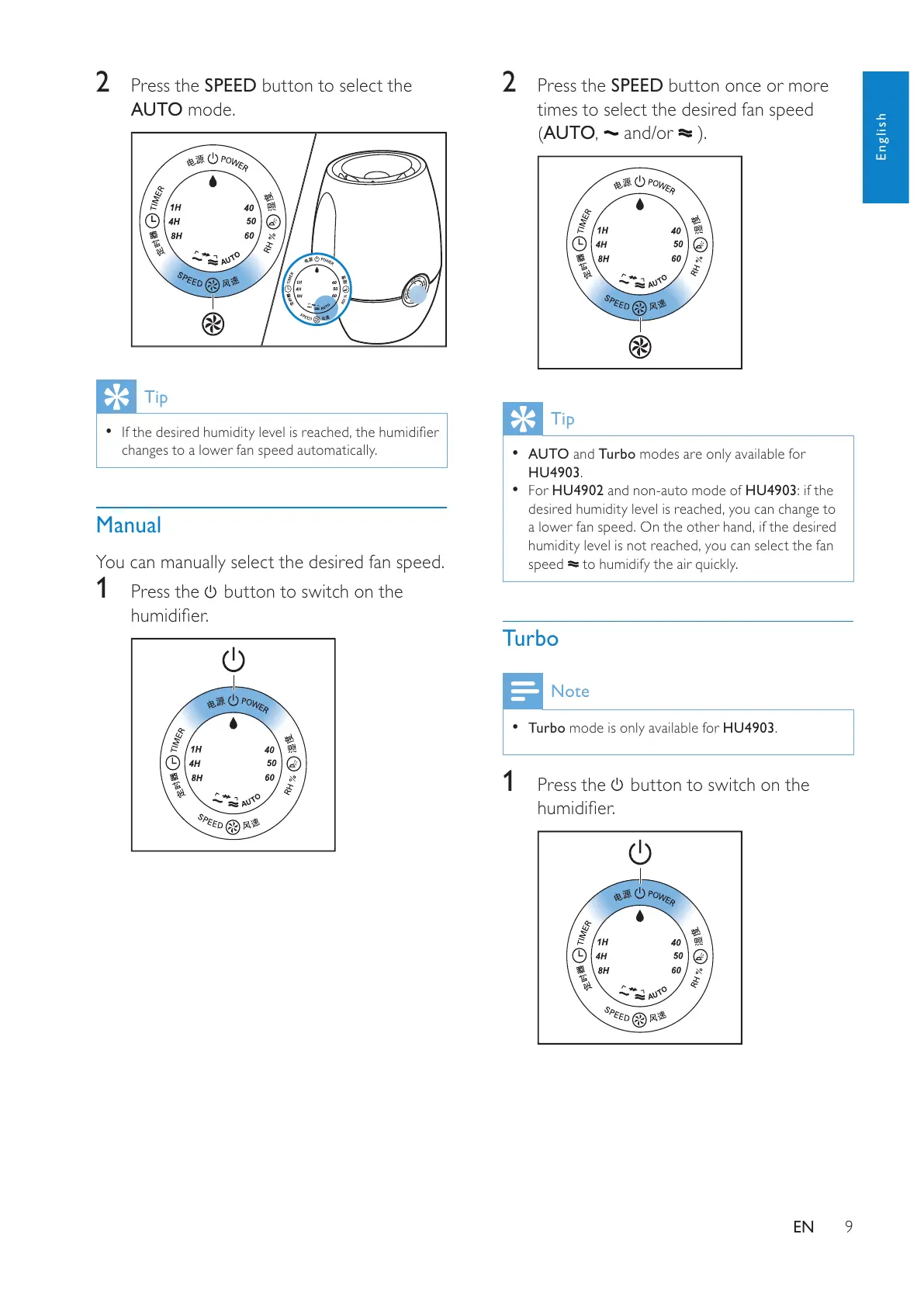 Philips HU4902 - Manual and Turbo Mode Operation