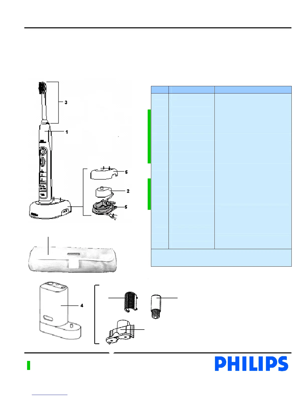Philips HX6100 - Parts List and Exploded View; Parts List and Service Codes