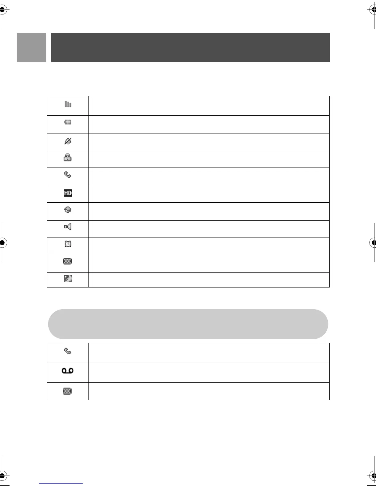 In stand-by mode, several icons & symbols may be displayed on the top row of the handset screen.