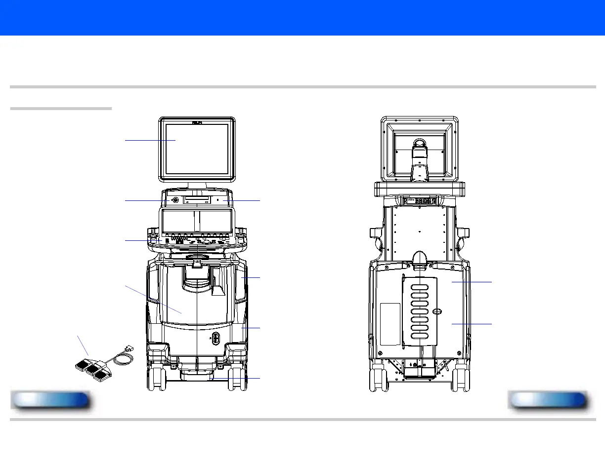 Figure 14-1 iE33 Ultrasound System Parts Locator Map (Front and Rear Ends)