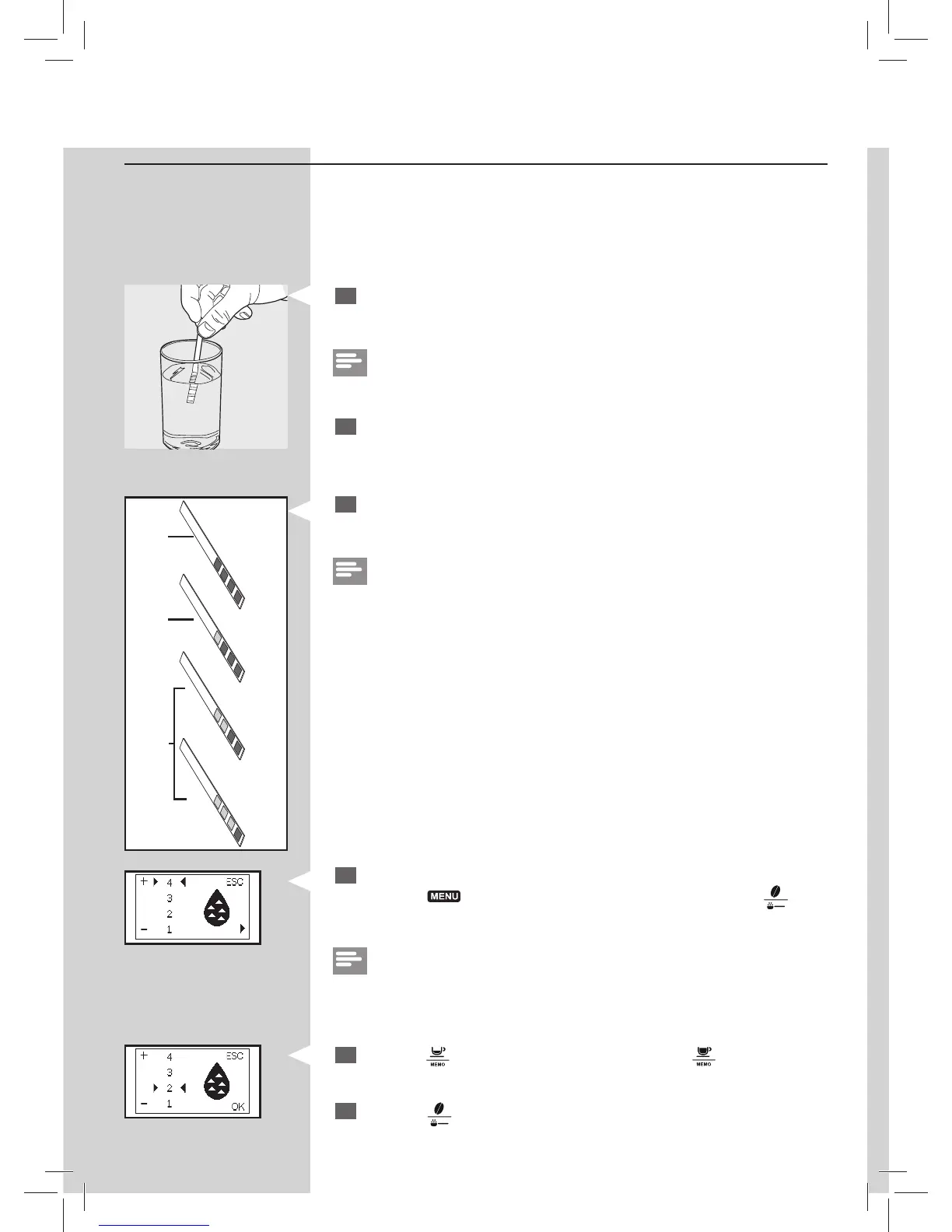 Immerse the water hardness test strip (supplied with the machine) in