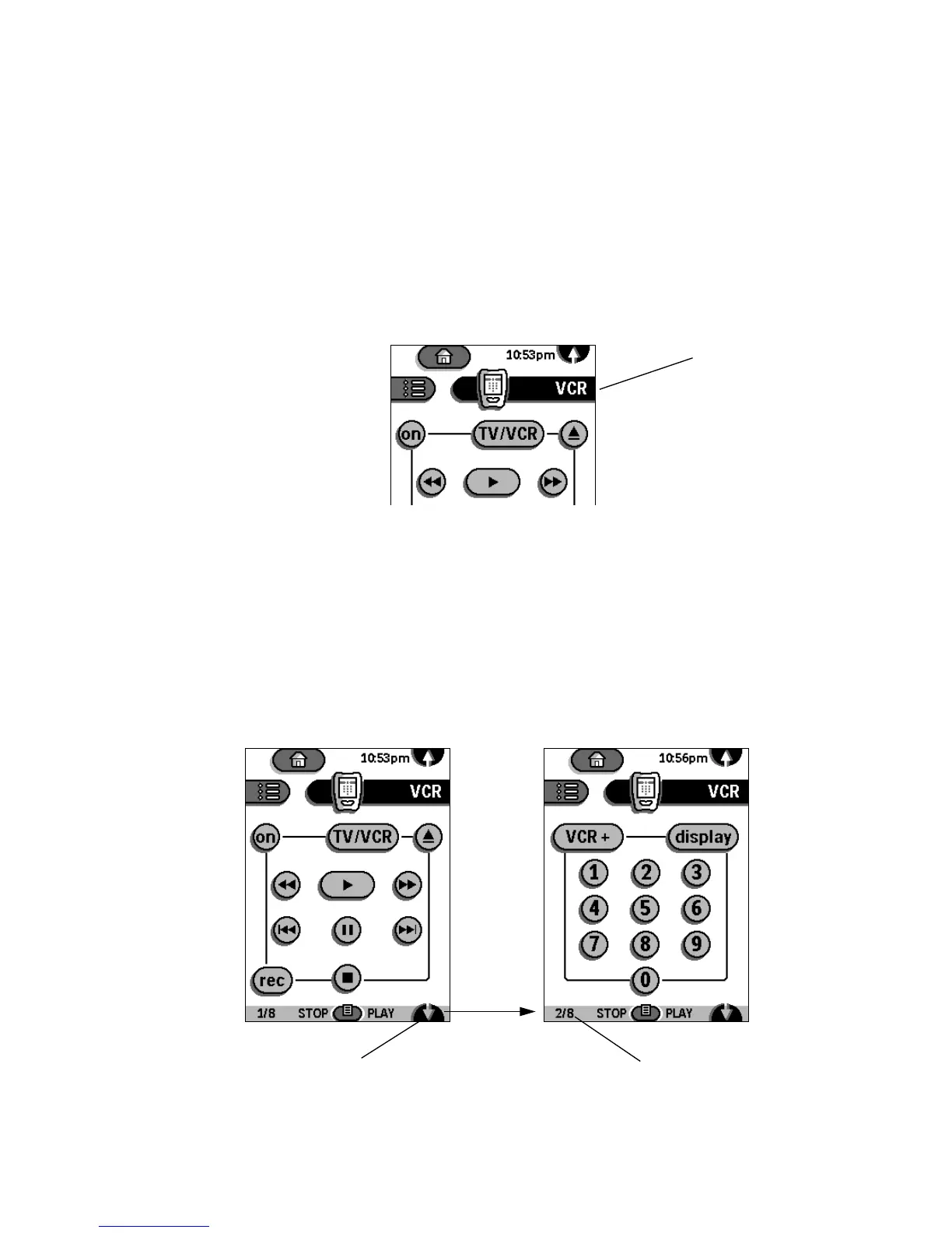 Scroll buttons take you to different control panels within the same device.