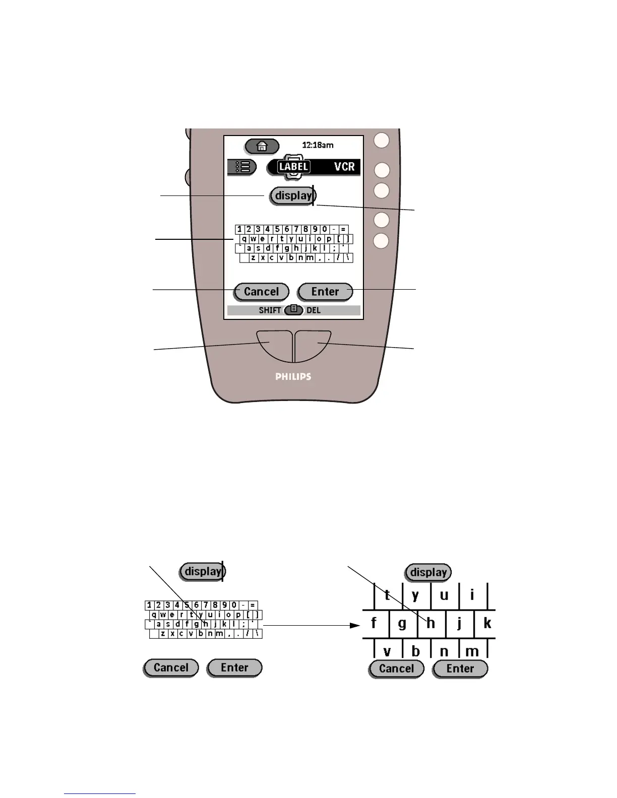 The display changes to show a miniature keyboard. Above the keyboard is the