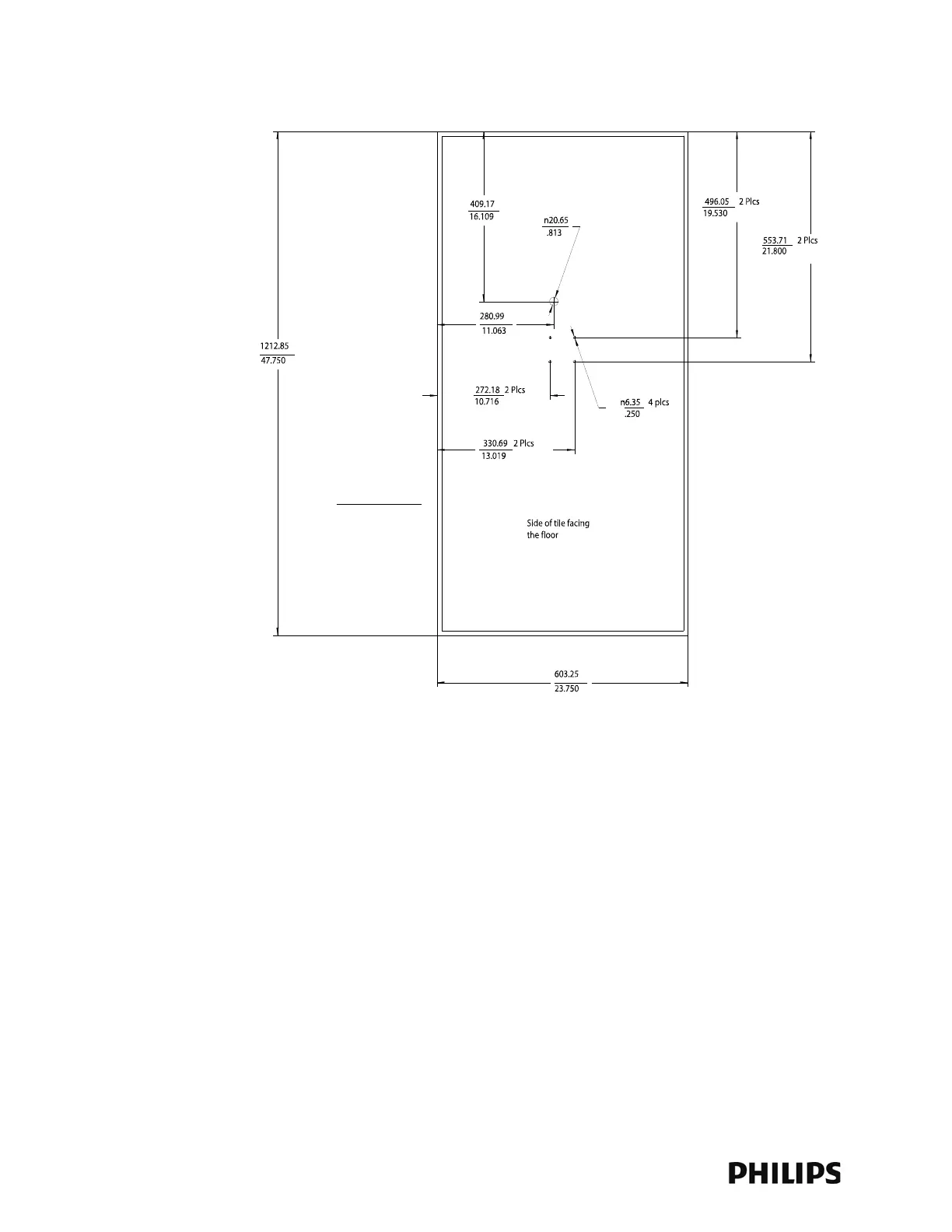 Figure 2-20: RA Below Ceiling Tile Hole Locations and Dimensions