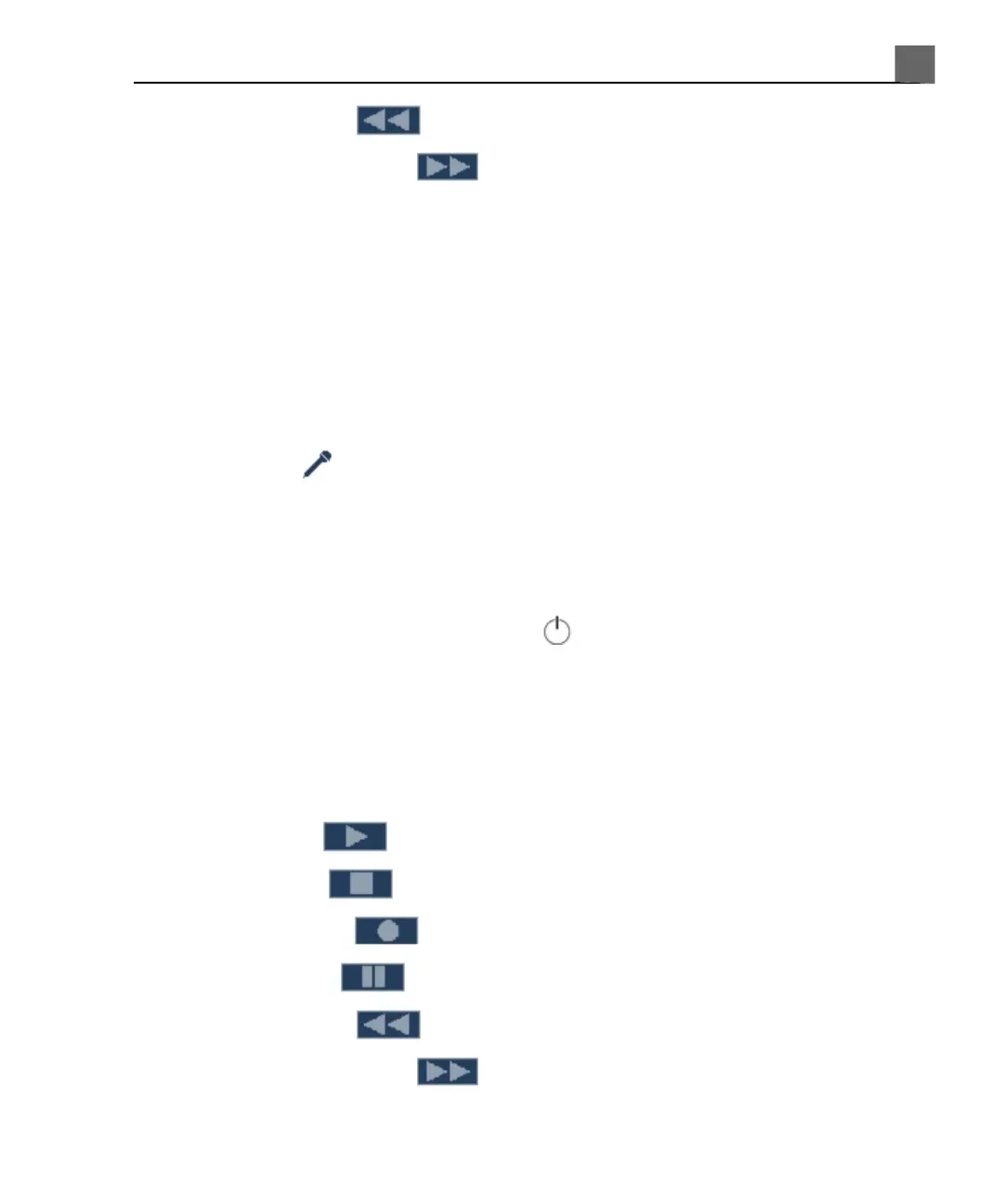 • Rewind to rewind the recording