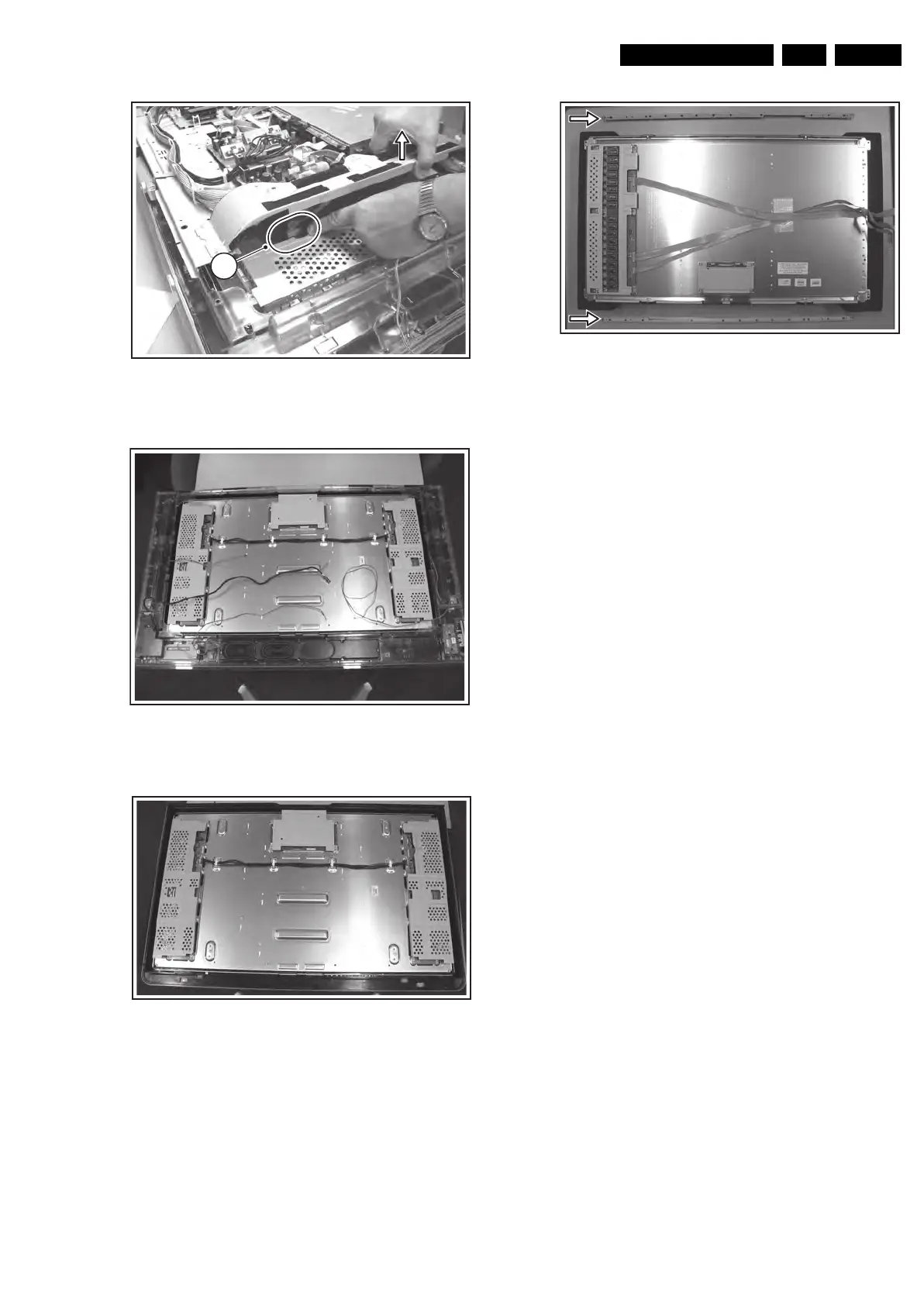 6. Lift the metal frame (together with all PWBs) from the LCD