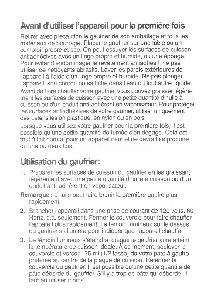 Lorsque vous utilisez votre gaufrier pour la première fois, il est