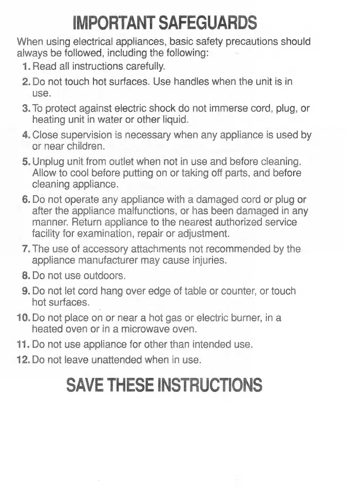 2. Do not touch hot surfaces. Use handles when the unit is in