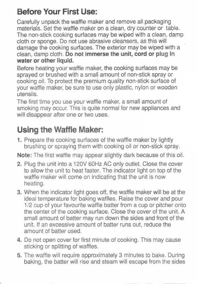 your waffle maker, be sure to use only plastic, nylon or wooden