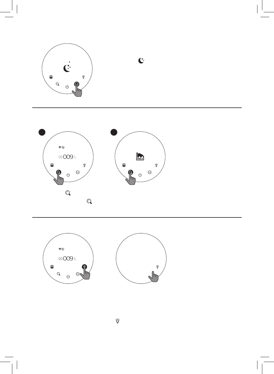 touch any button to wake up all lights� Then, if no further operation, all lights will be o or