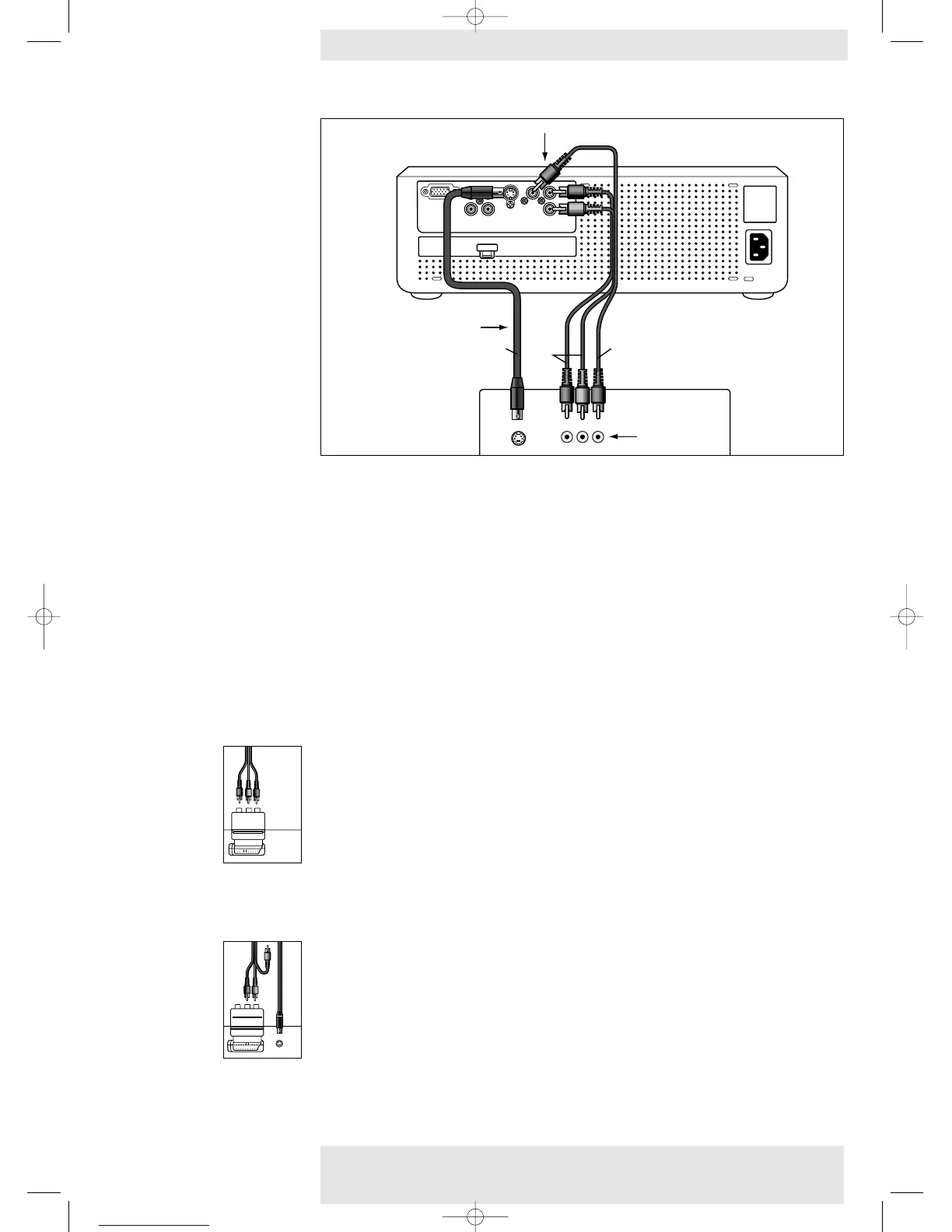 1 Connect the Scart/RCA Audio Video adapter supplied to the Scart connector of the VCR,