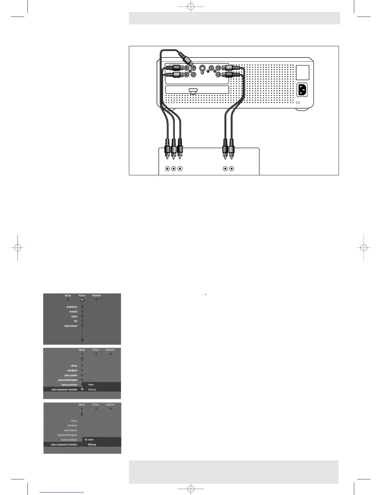 • Connect the Component in sockets of the projector (