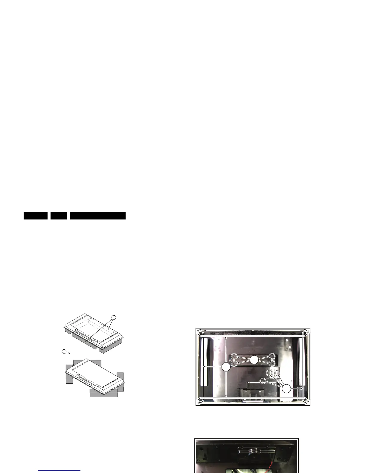 By laying the TV face down on the (ESD protective) foam bars,