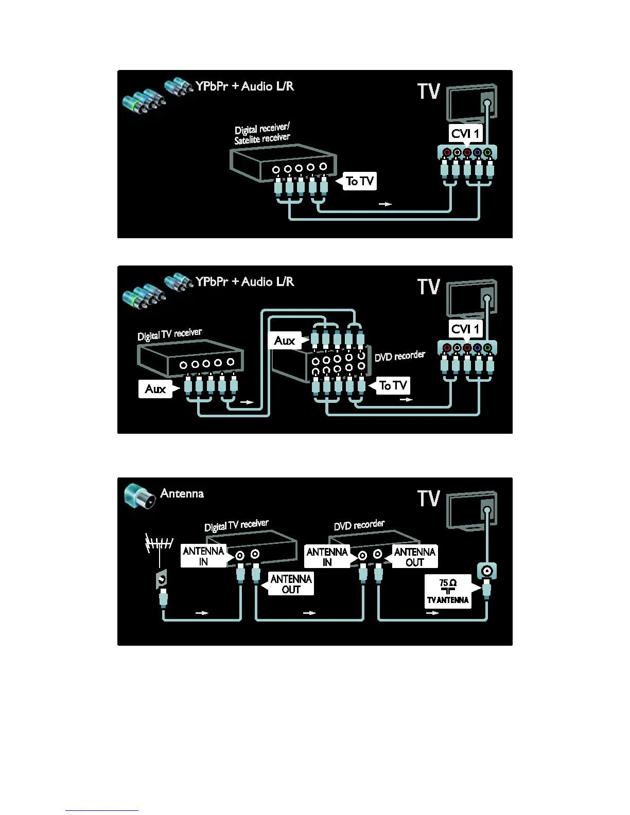 Use a YPbPr cable to connect the receiver to the TV.