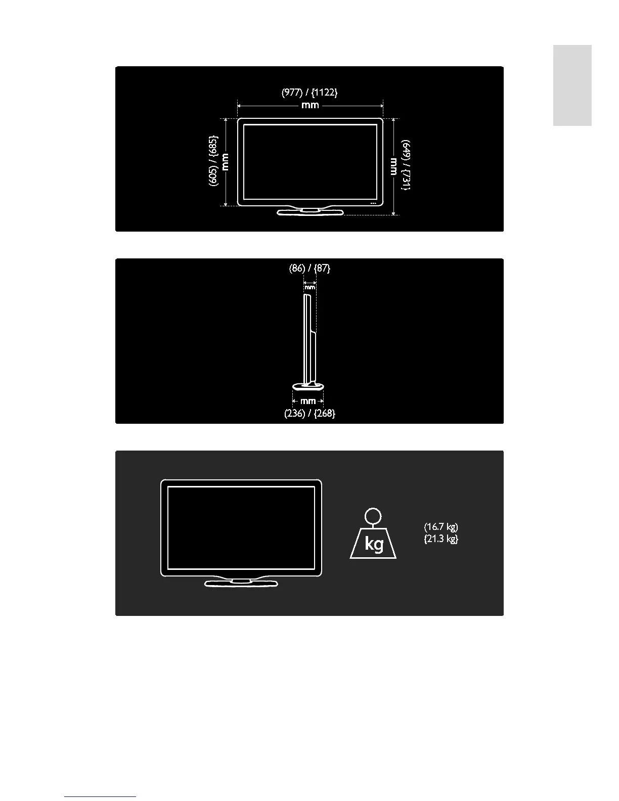 Use your TV legend to note the weight of the TV with stand.