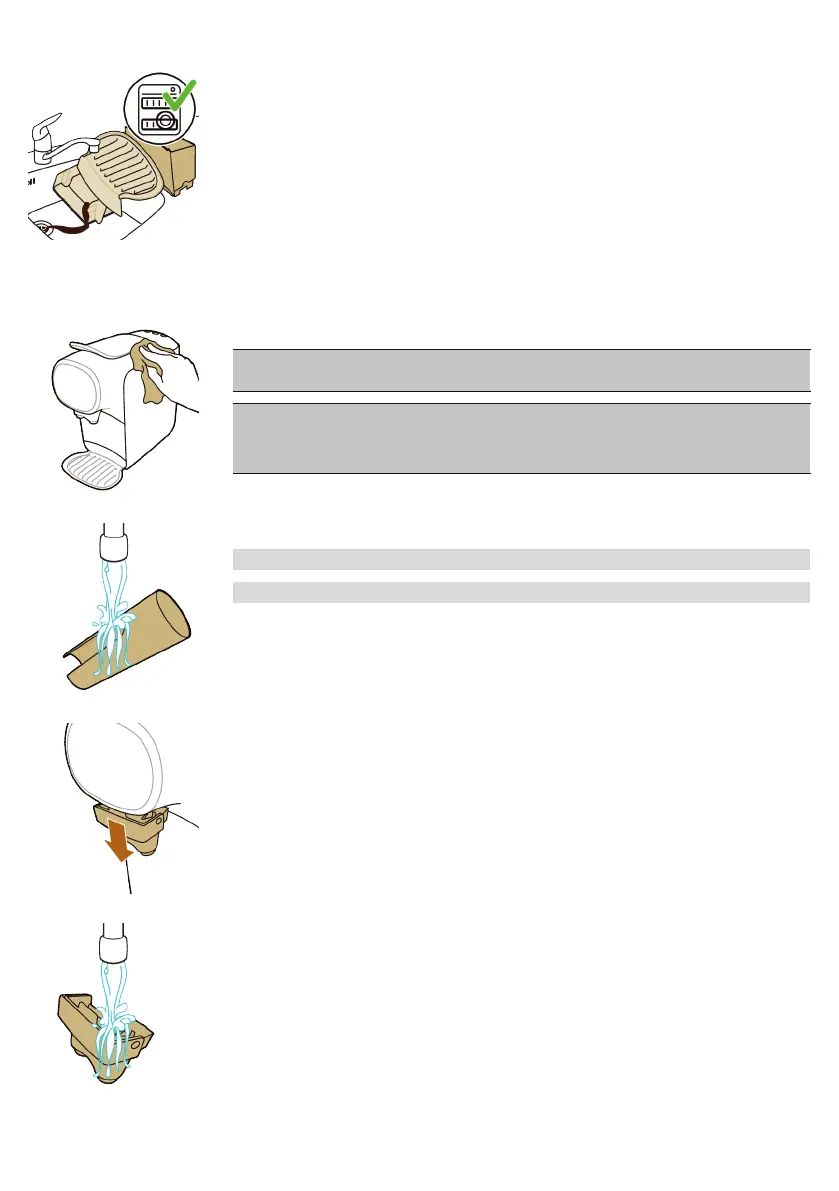 5 Rinse the waste water drawer and used capsule container under a tap. You