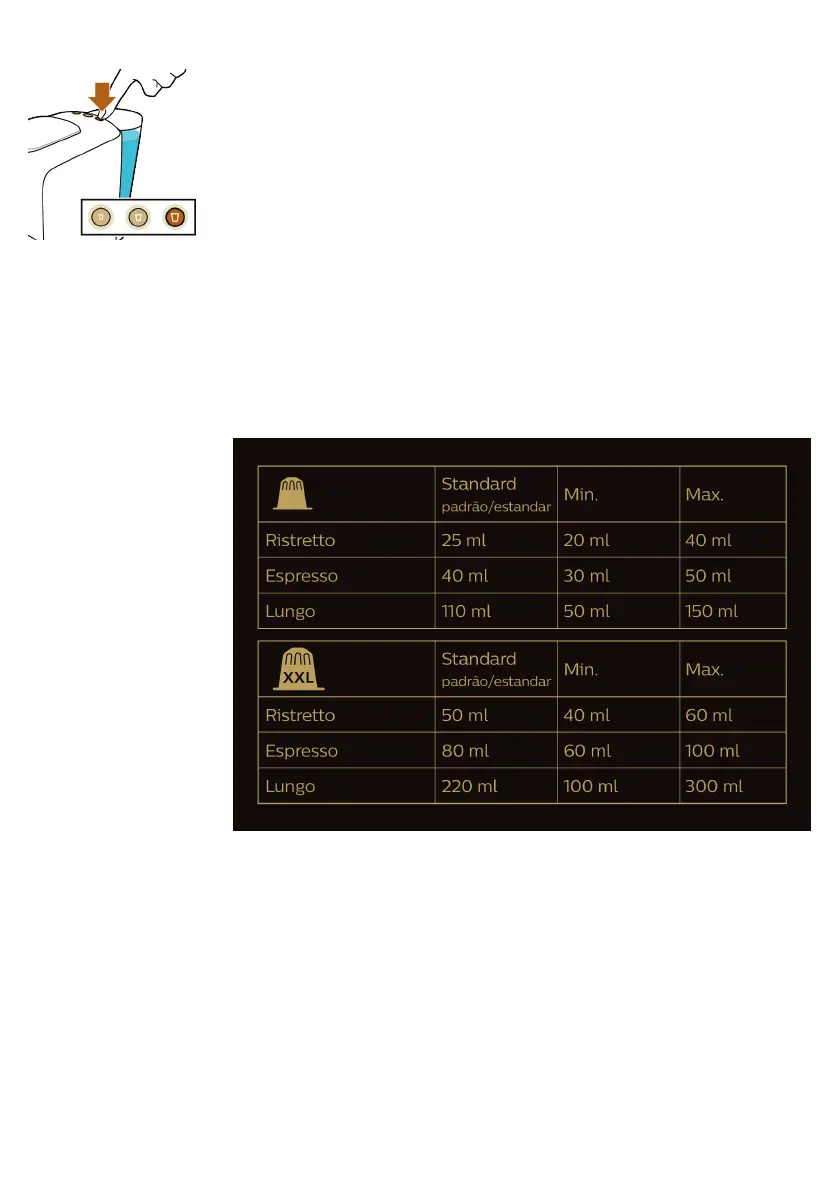 3 Četras sekundes turiet nospiestu tās kafijas pogu, kuras tilpumu vēlaties