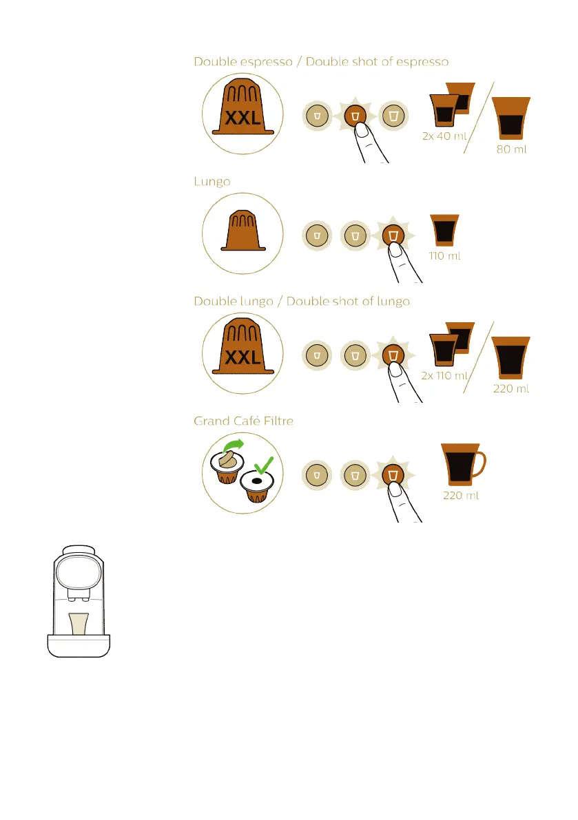 1 Egy adag kávé készítéséhez tegyen egy csészét a kávéadagoló kifolyója alá.