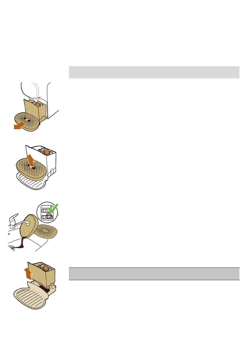 4 Emelje le a használt kapszulák rekeszét a vízfelfogó tálcáról, és ürítse ki.