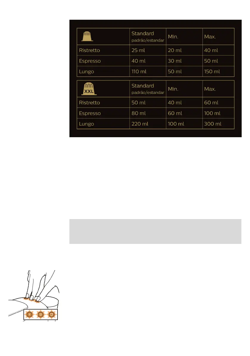 3 Натиснете и задръжте бутона за кафето, чиито обем искате да