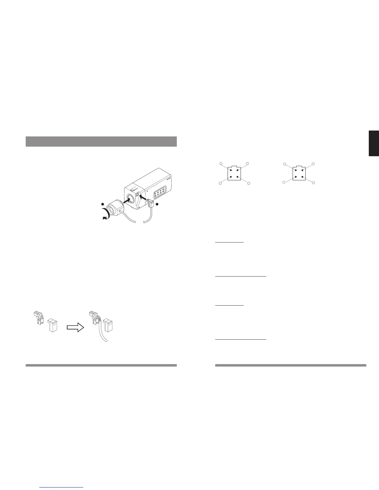 2) Where applicable, connect the iris control cable for automatic iris control to the lens
