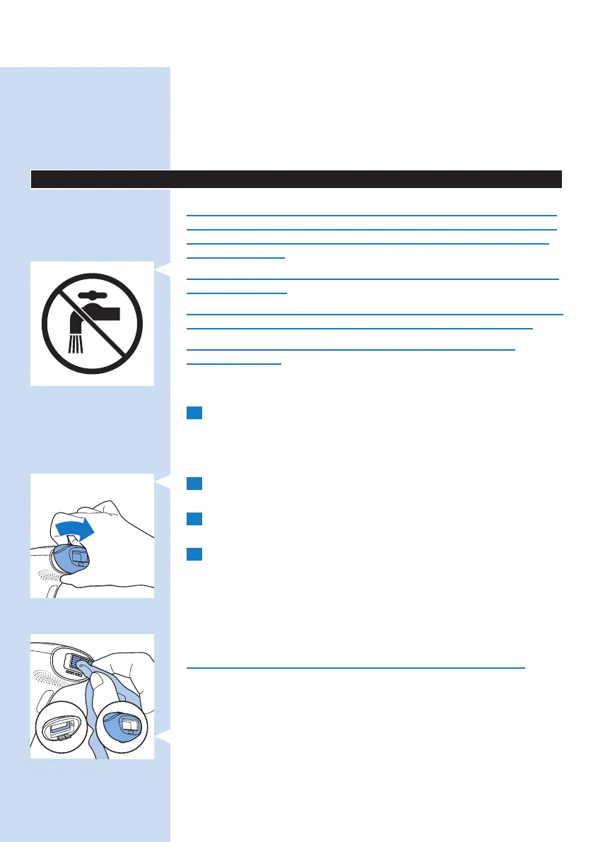 Zorg ervoor dat de elektronische contactpunten niet nat worden.