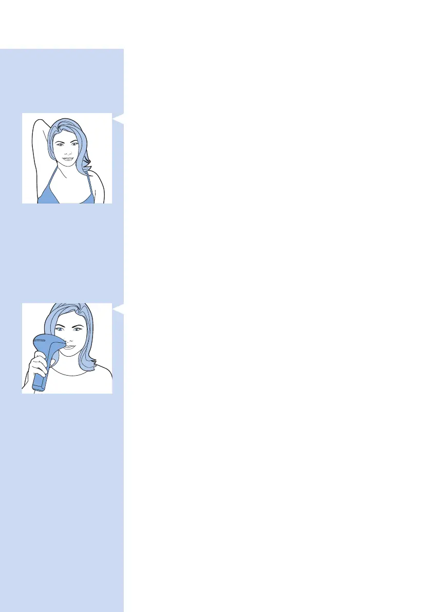 Použití přístroje na tvář (nad horním rtem, brada, kotlety)
