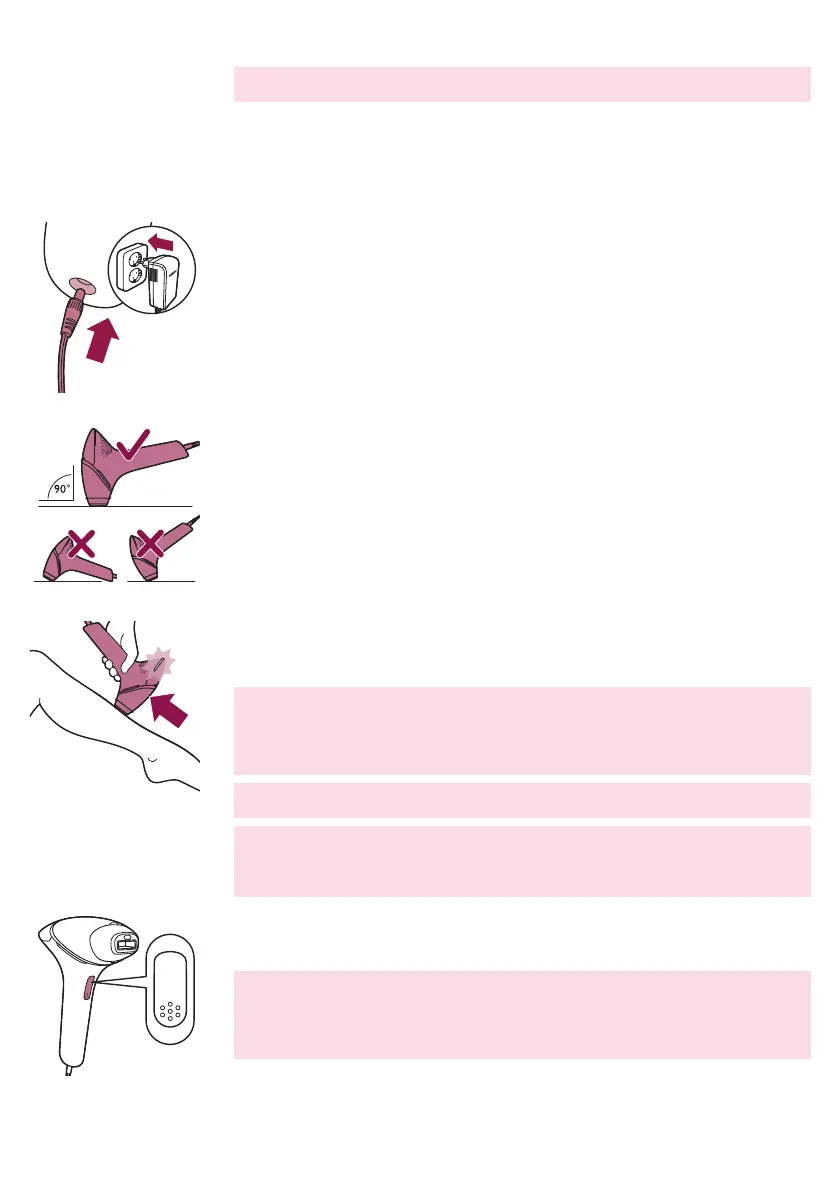 4 Placez l'appareil perpendiculairement à la peau, de sorte que le système