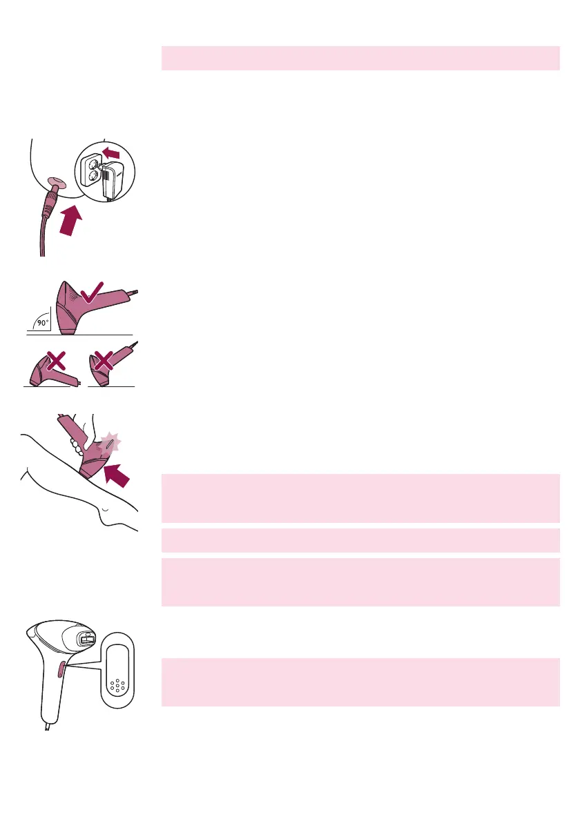 7 Coloque o aparelho na próxima zona a tratar. Após cada impulso,