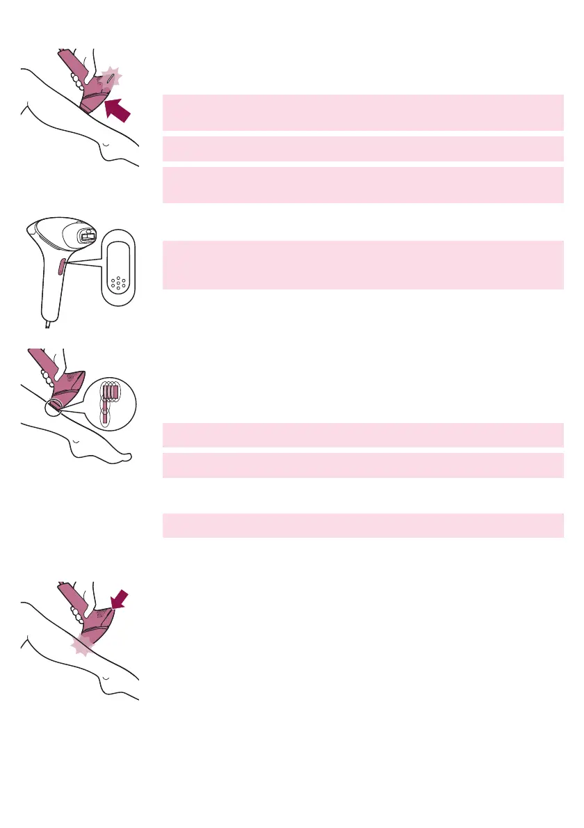 7 Place the device on the next area to be treated. After each flash, it takes