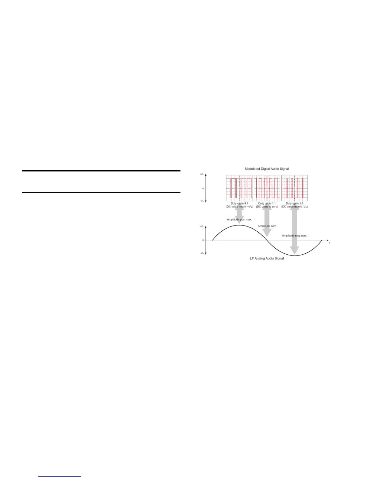 with a fixed frequency (“clock” frequency) far beyond the audible range. The duty cycle of this square wave is modulated with the audio signal.