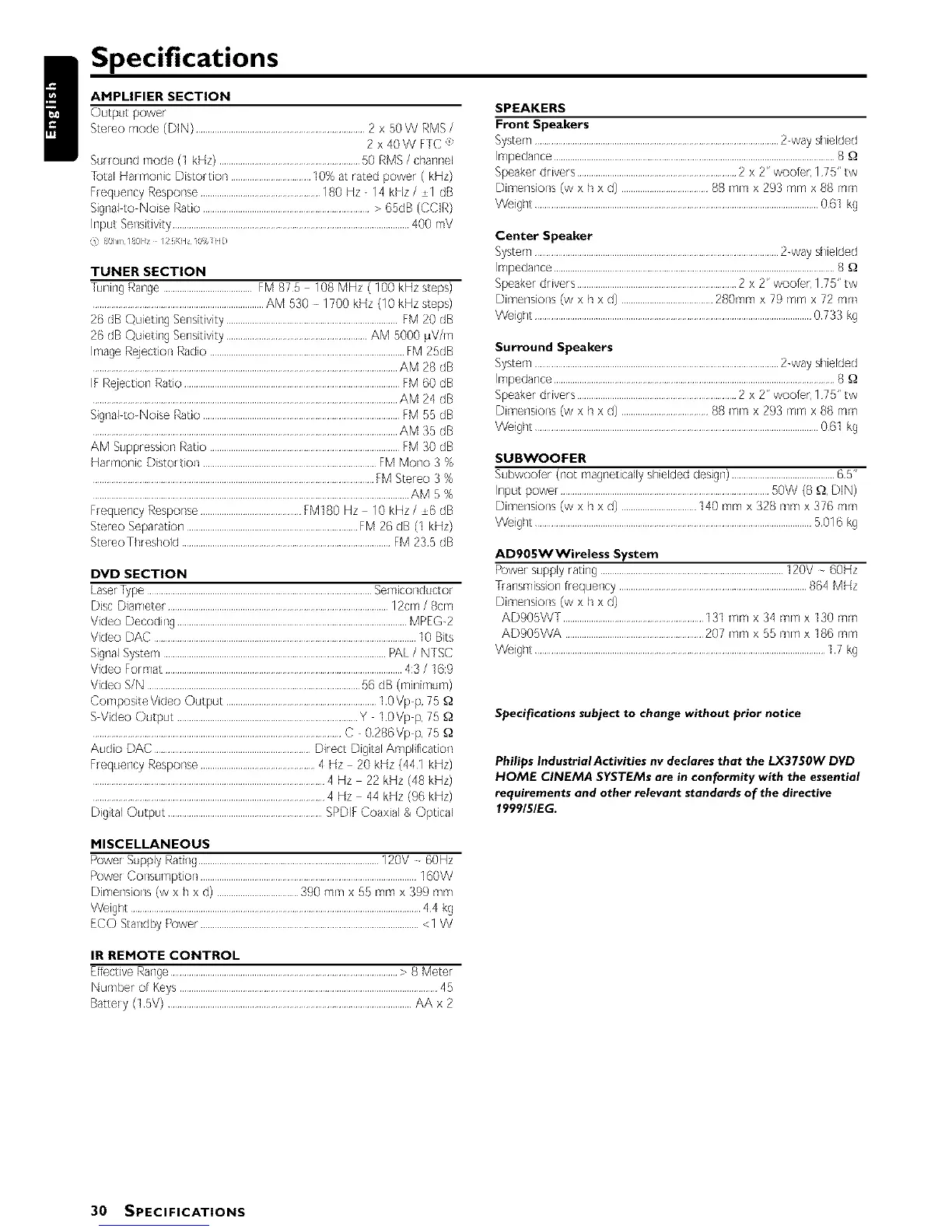 30 SPECIFICATIONS