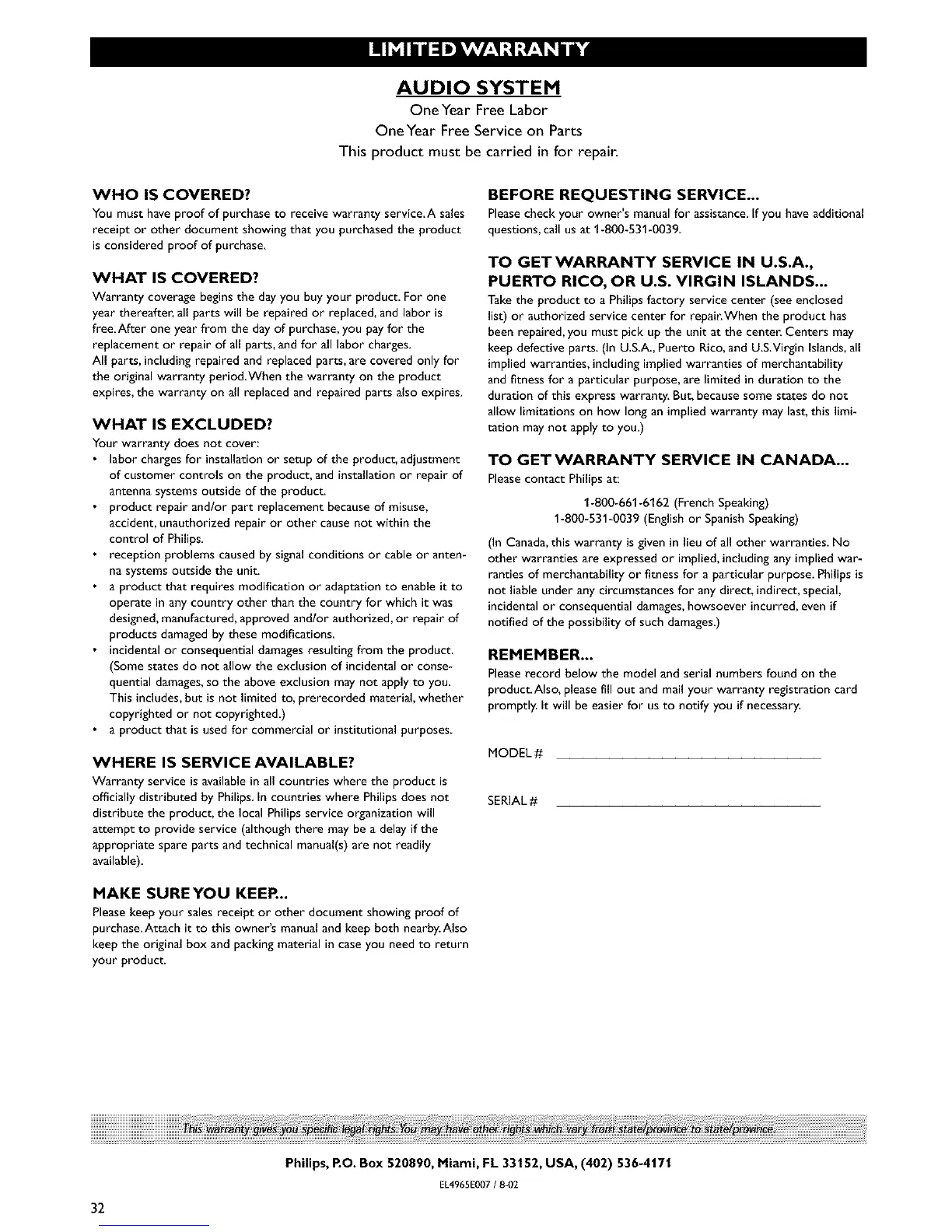 PhUips, RO. Box 520890, Miami, FL 33152, USA, (402) 536-4171