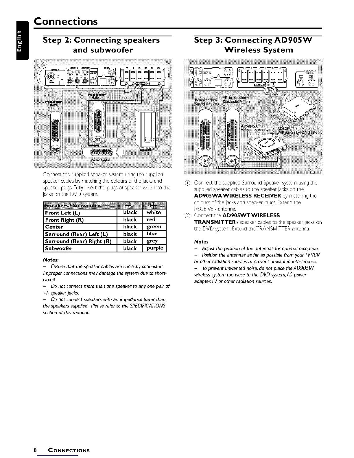 _t} Connect the supplied Surround Speaker system using the