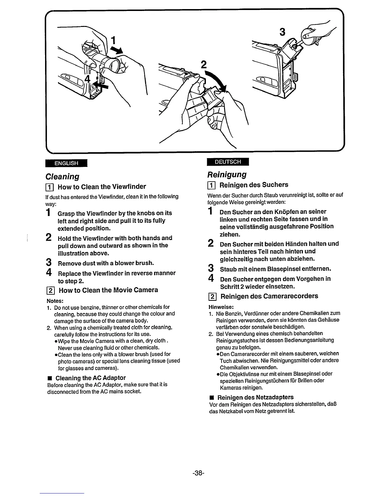 Philips M 661/21 - Cleaning; How to Clean the Viewfinder; How to Clean the Movie Camera; Cleaning the AC Adapter