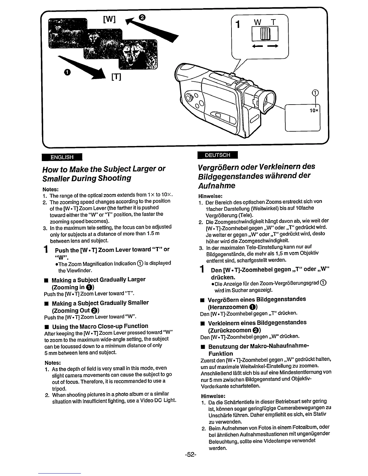 Philips M 661/21 - How to Make Subject Larger or Smaller During Shooting; Zooming In;Out; Using the Macro Close-Up Function