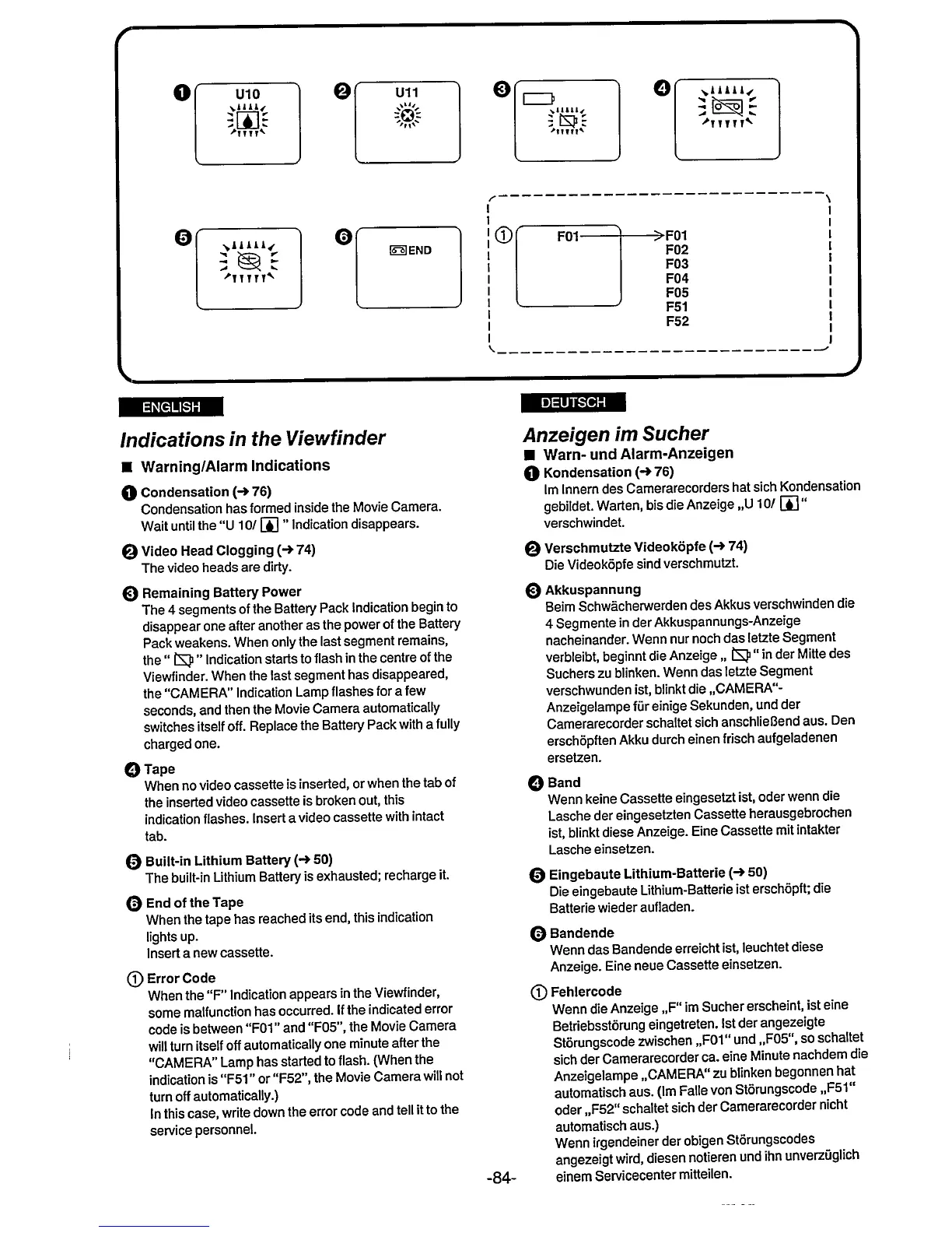 Philips M 661/21 - Indications in the Viewfinder; Warning;Alarm Indications
