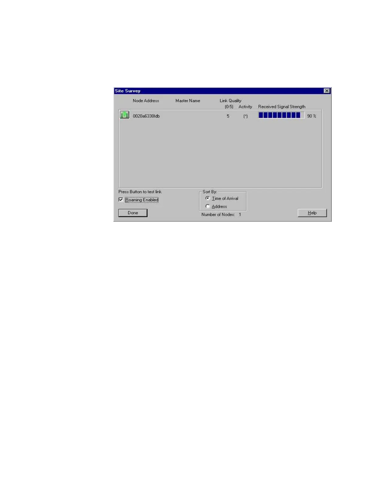 In this example, the Node Address shows one unit (this is the MAC address of the radio