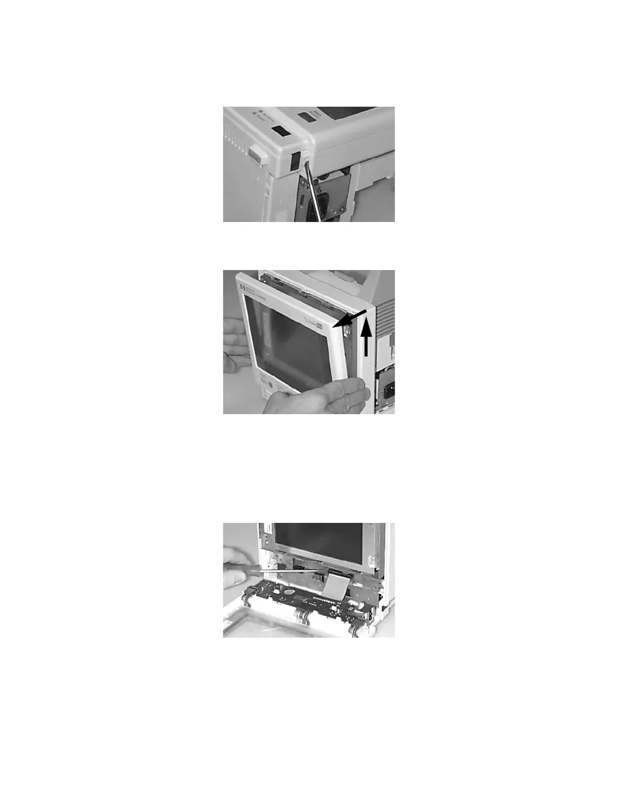 Step 8 Stand the Monitor up again and gently lift the Monitor Bezel up and out. Gently let