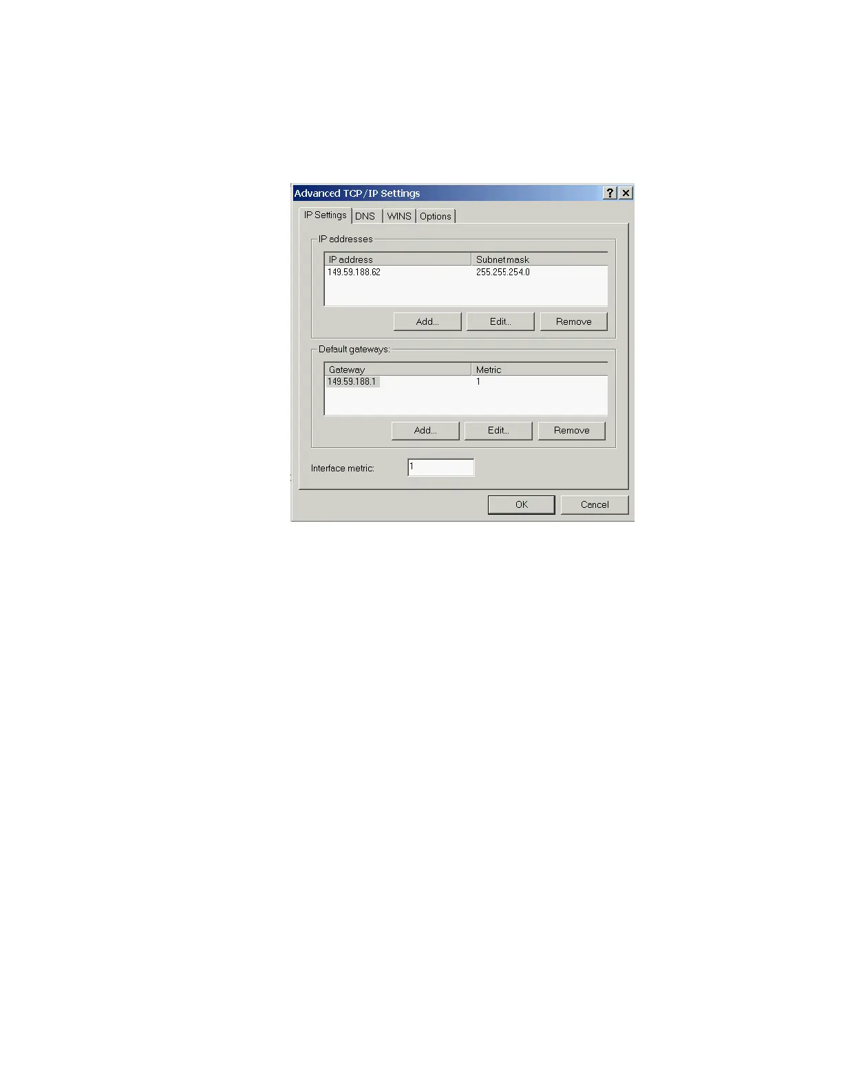 Figure 4-11 Windows 2000 Hospital LAN TCP/IP Advanced Settings