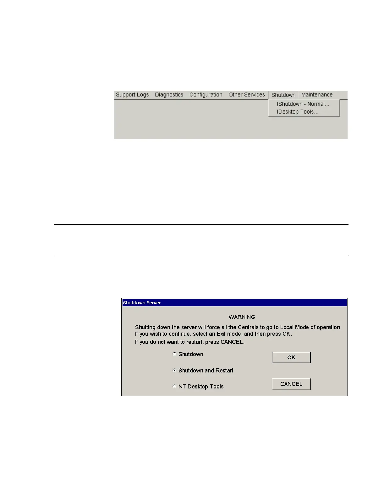 rebooting it. The Shutdown menu of the Service window provides a Shutdown - Normal