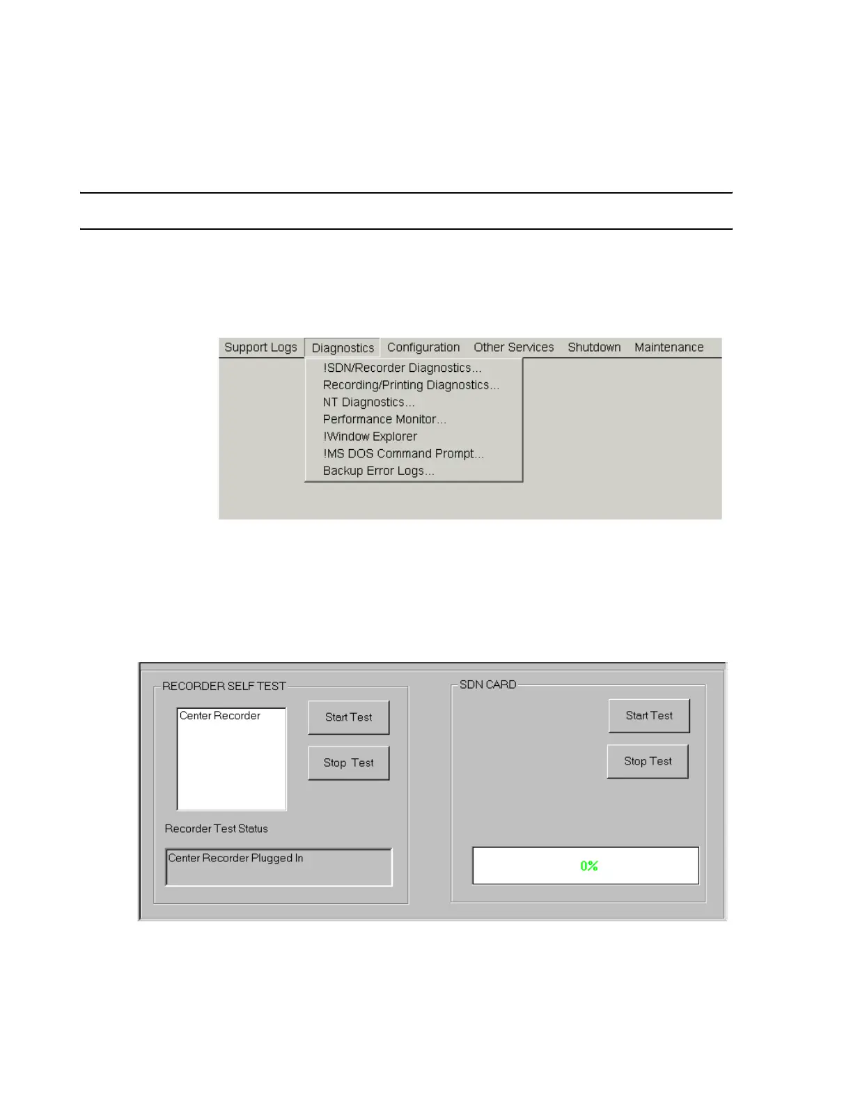 Two diagnostic tests are provided in the SDN/Recorder Diagnostics window.