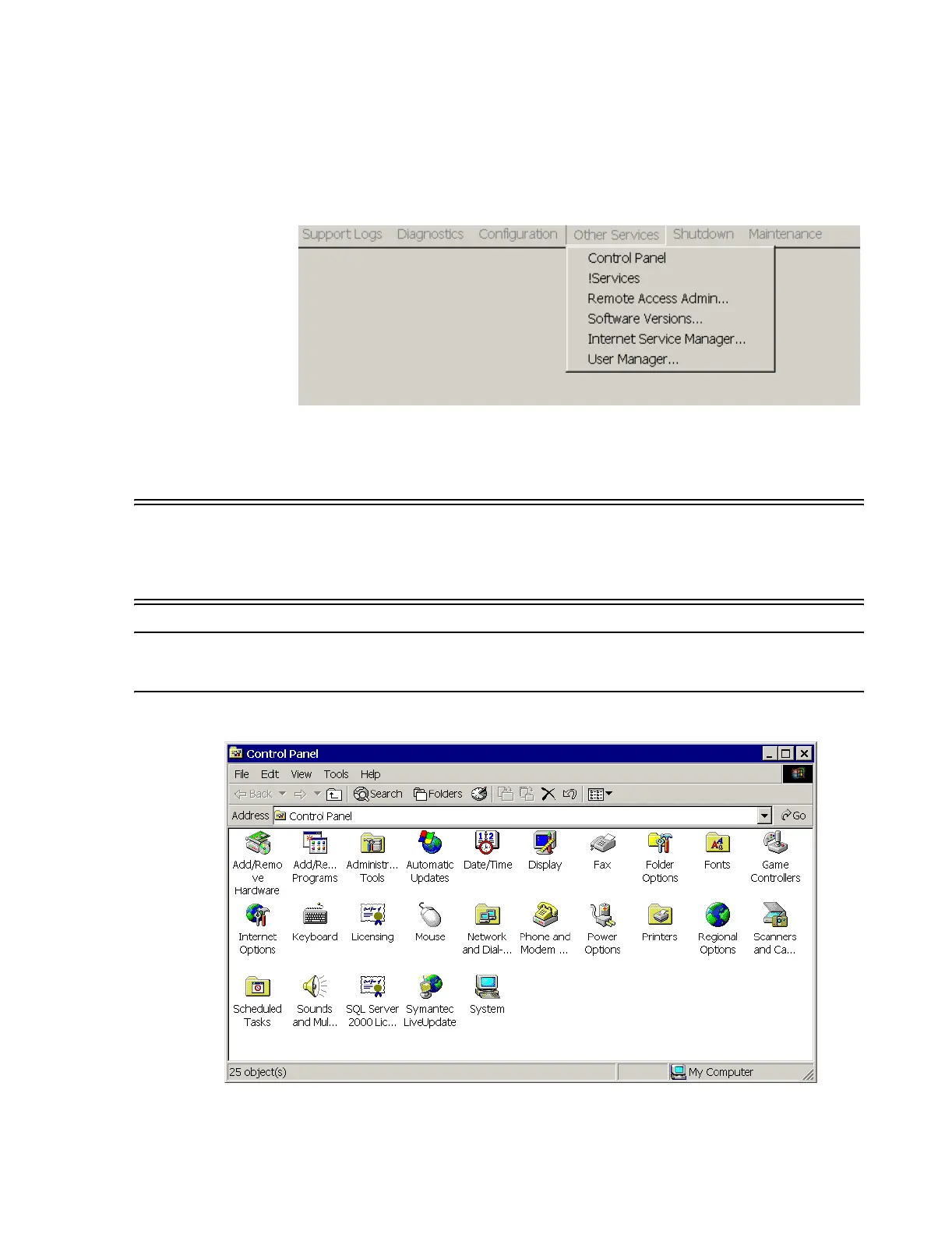 Other Services The Other Services menu provides access to a variety of PC Control Panel applications,